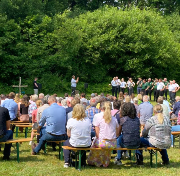 Gottesdienstes. Besonders das Soli der Parforce-Hörner "….hat mir einen Schauer über den Körper gejagt," sagte einer der Besucher. Ein rundum gelungener Freiluft-Gottesdienst.